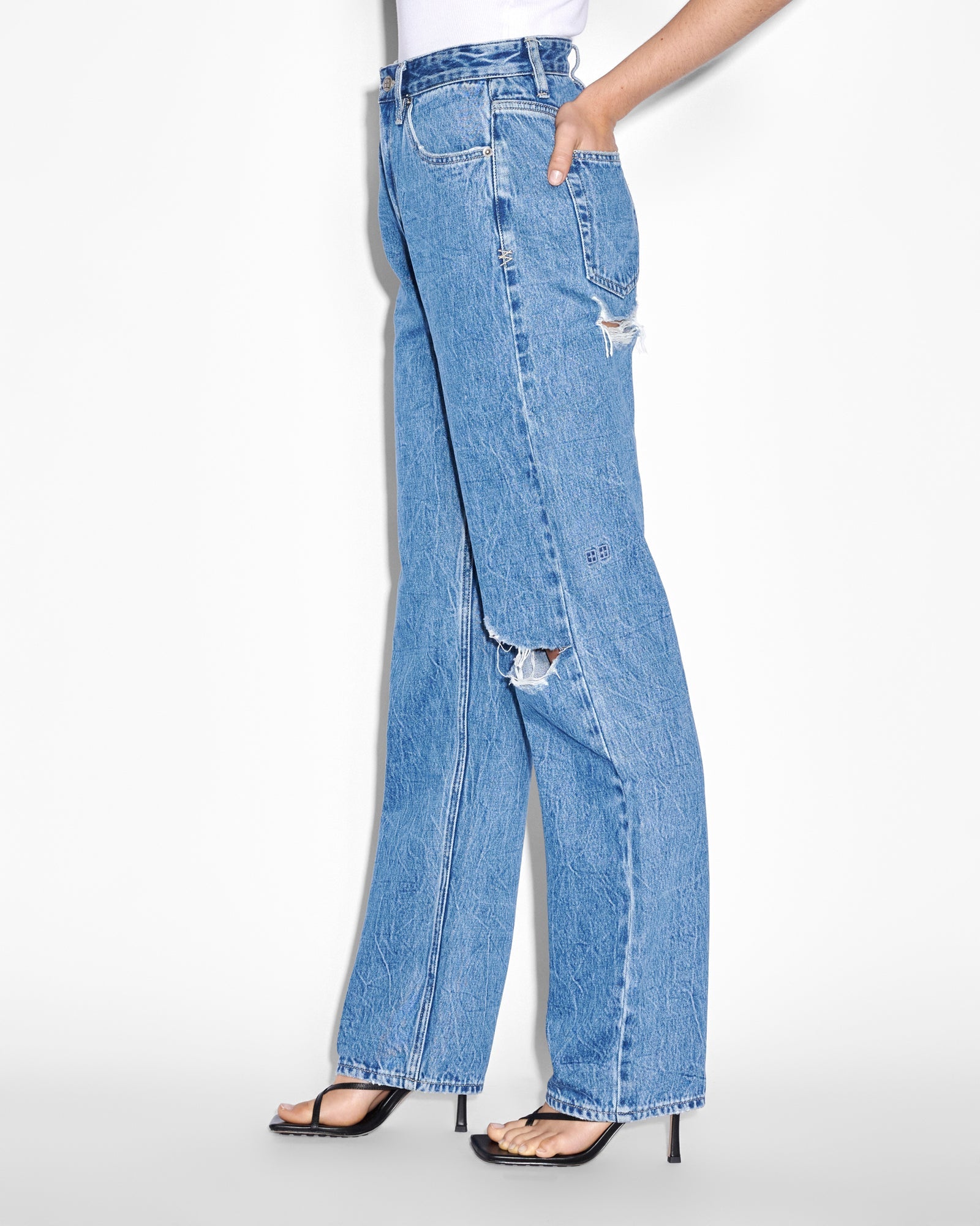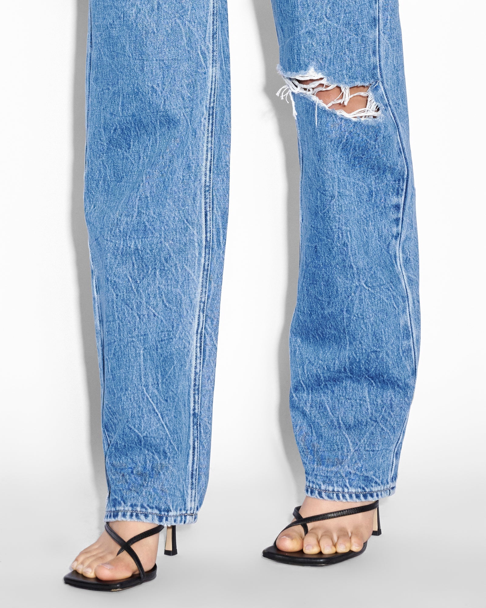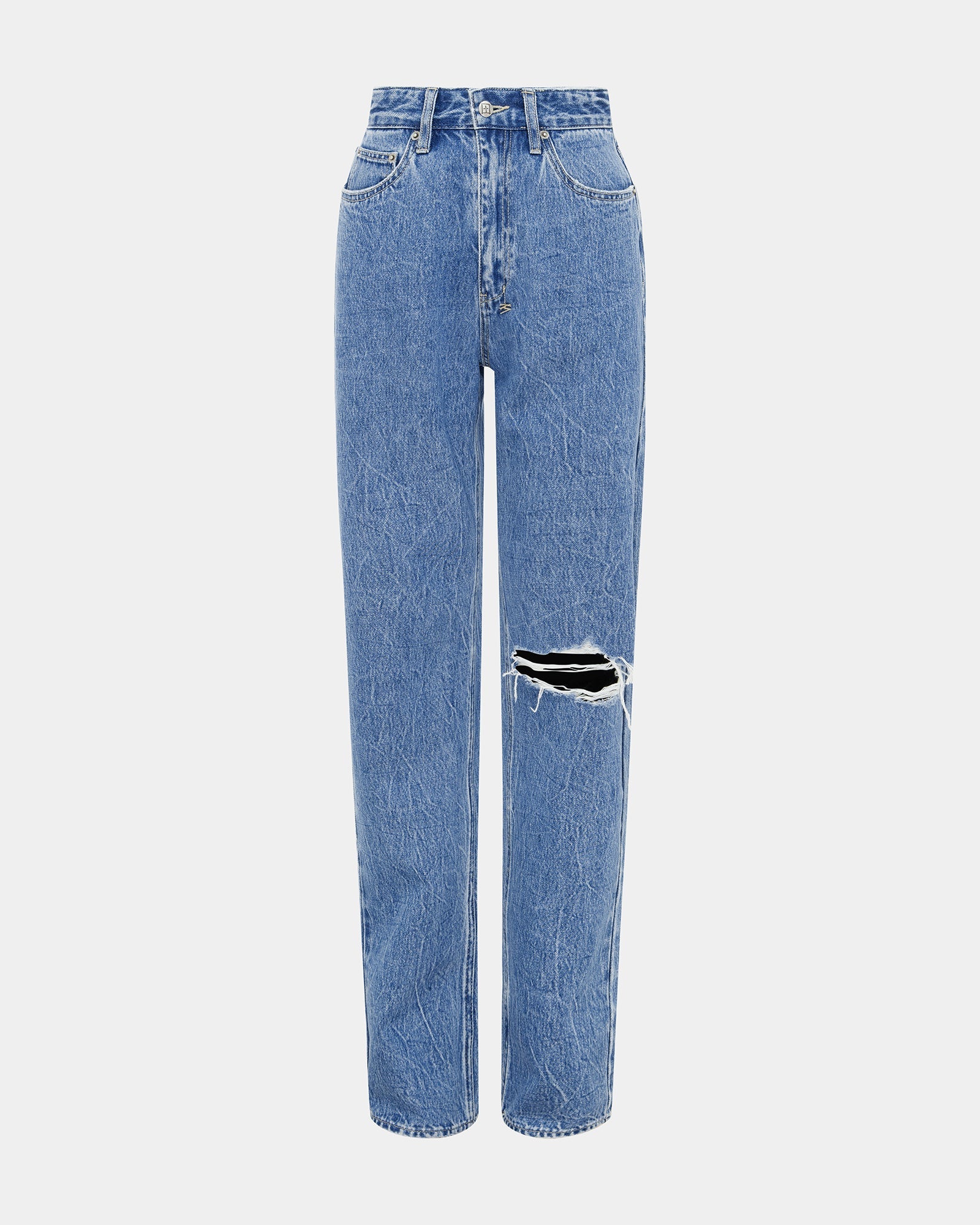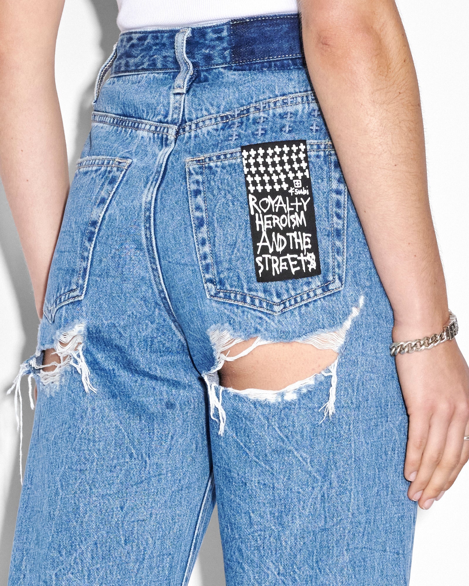 Playback Ramble Trashed is a Ksubi update to the everyday blue jean. This relaxed, tapered full-length jean has a super-high rise waist and is made from a premium rigid denim in a unique marbled wash in a classic mid-blue tone. This style features large knee rips and cheeky butt rips just below the back pockets. Classic five pocket detailing, with Ksubi branded Anti-Silver hardware, this style also features iconic Ksubi branding and a removable pocket tag. This wash method is done by hand, slight variance may occur, making your Ksubi's unique. Trashing may grow over over time, take care.