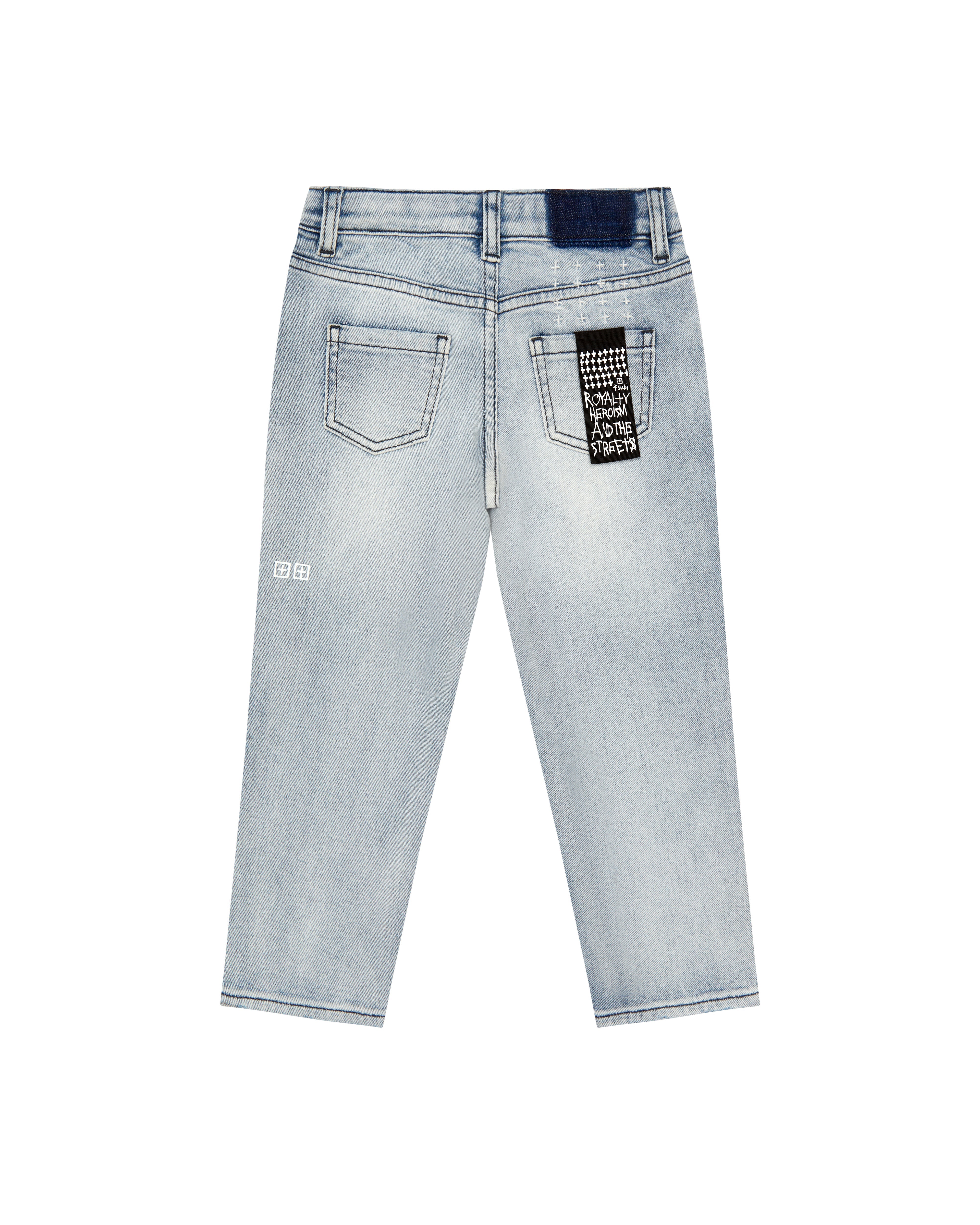 The Lil Jett Jean Philly Blue is a slim tapered fitting jean made from a soft touch cotton denim. This style has a mid to long rise, button fly closure, 5-pocket design and an adjustable waistband. Made from stretch denim for comfortable and easy wear in a indigo blue colourway. Features signature Ksubi branding including a pocket flag, 4x4 embroidery detail, and T-box printed logo.