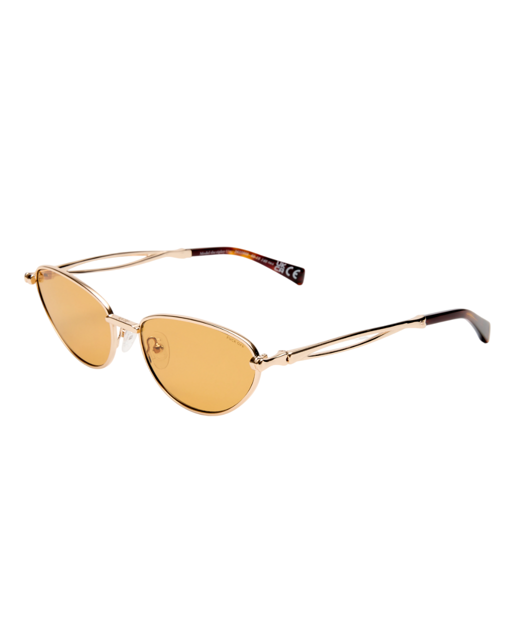 The Ripley Sunglasses Gold feature a sharp cat-eye silhouette with sculptural, sleek lines and attitude from every angle. Designed with Ksubi's signature skeletal temple hardware for a bold, standout finish, they are delivered in signature Ksubi eyewear packaging with a branded cleaning cloth.