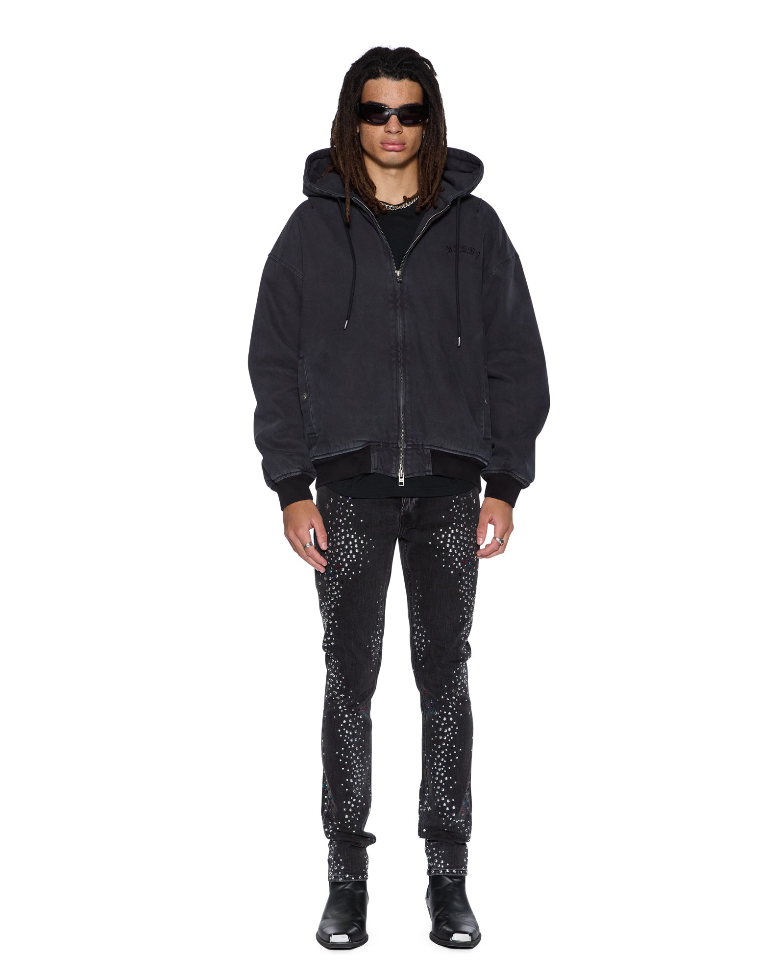 The Maxx Scatter Blue is an exaggerated straight leg jean with a long rise. Made from premium rigid indigo denim with a medium stone wash. Features seasonal patches on the front and back of the jean. Finished with signature Maxx t-box and 4x4 embroidery and Ksubi branded hardware.